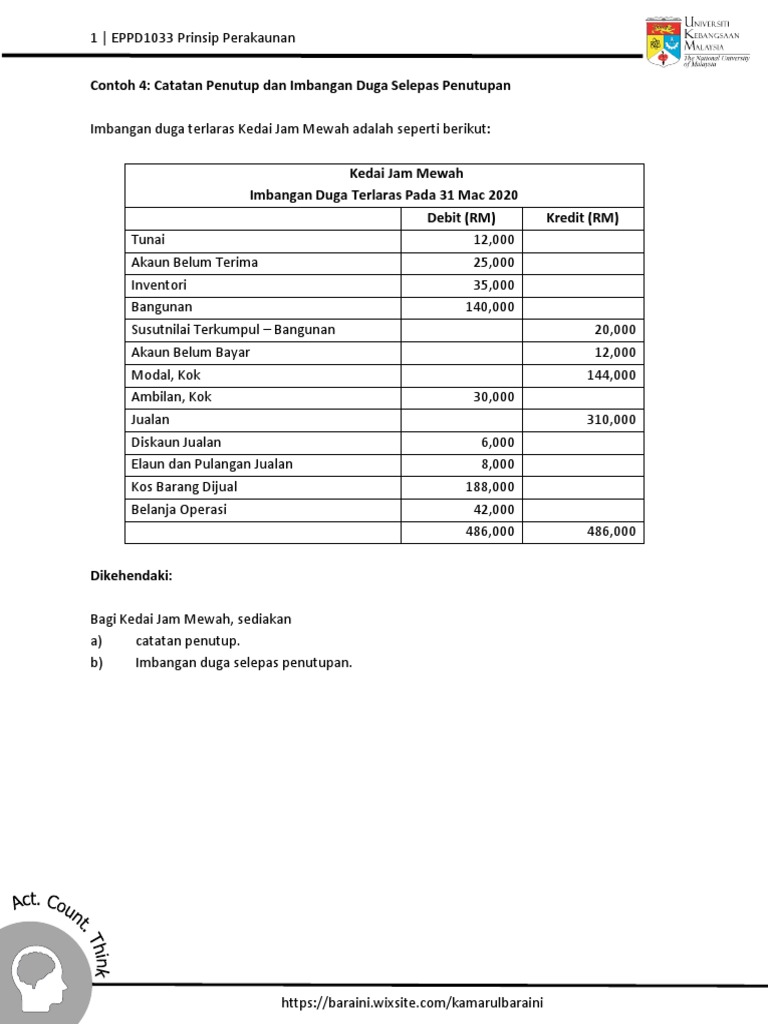 Contoh 4 Catatan Penutup Dan Imbangan Duga Selepas Penutupan Pdf